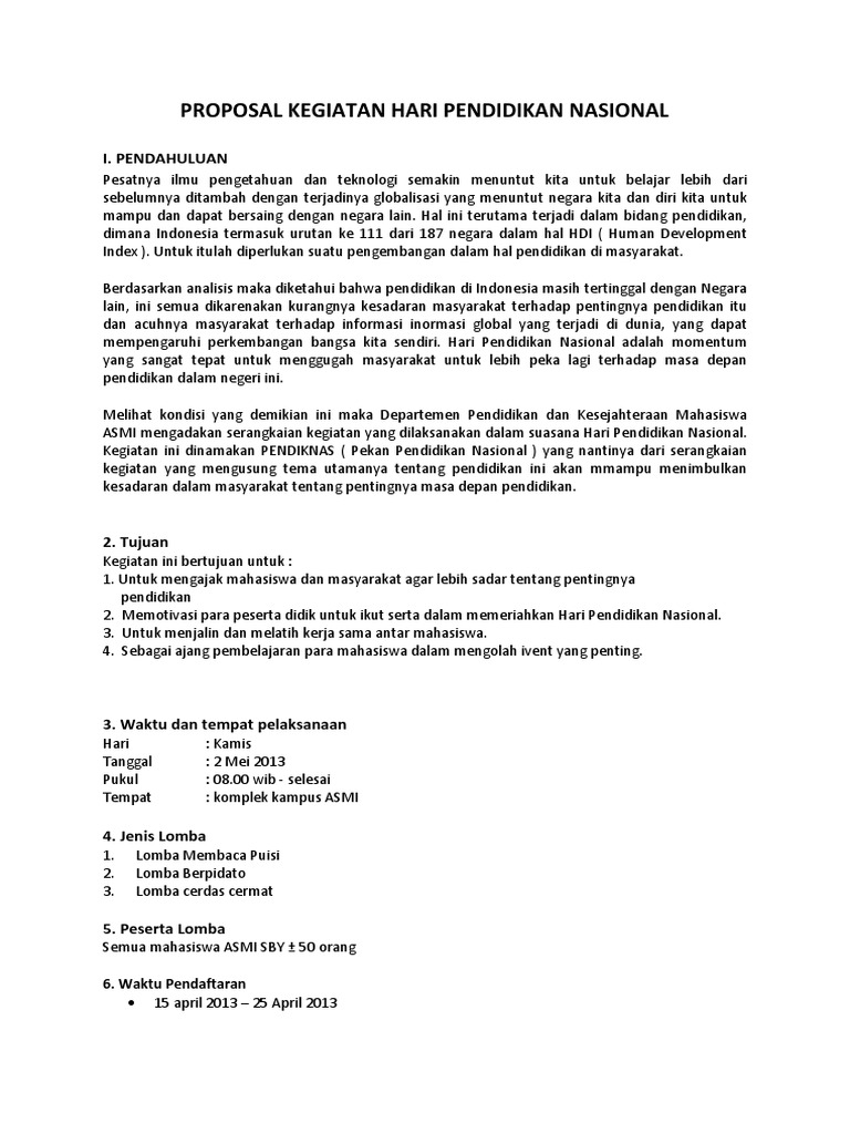 Contoh Proposal Kegiatan Hari Pendidikan Nasional - Berbagi Contoh …