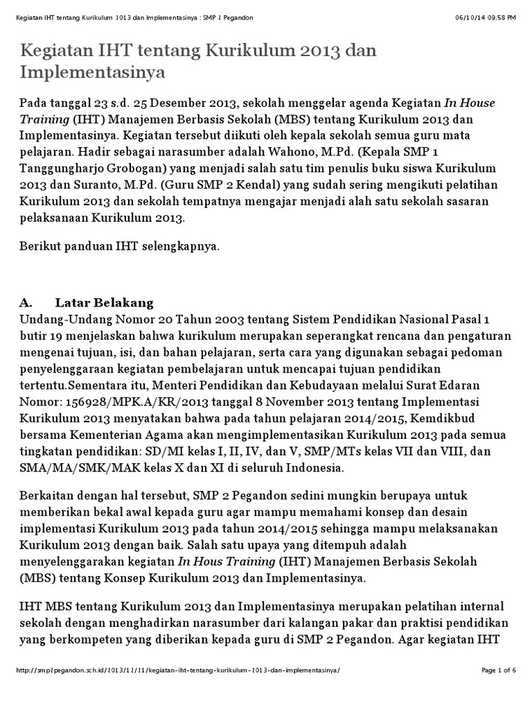PDF) Kegiatan IHT tentang Kurikulum 2013 dan Implementasinya : SMP 2 Pegandon | Dedi Efendi - Academia.edu