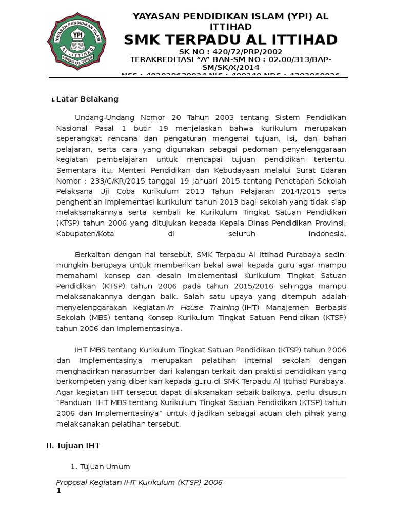 Proposal Kegiatan Iht Kurikulum 2013