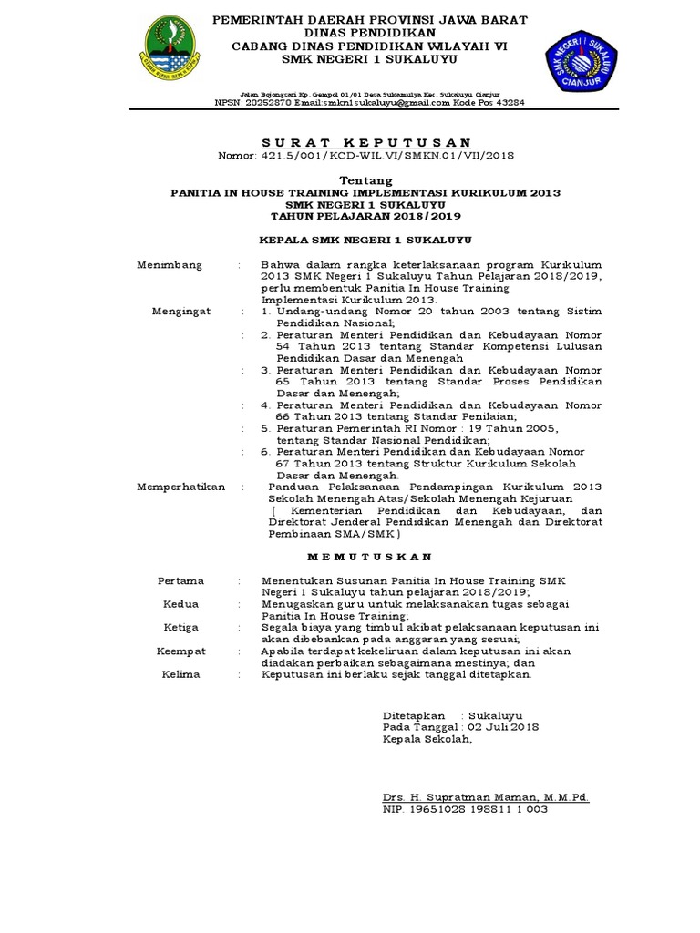 DOC) IN HOUSE TRAINING PENGIMBASAN KURIKULUM 2013 SMA N 1 BATANG TAHUN 2013 | Pais Indrayuda - Academia.edu