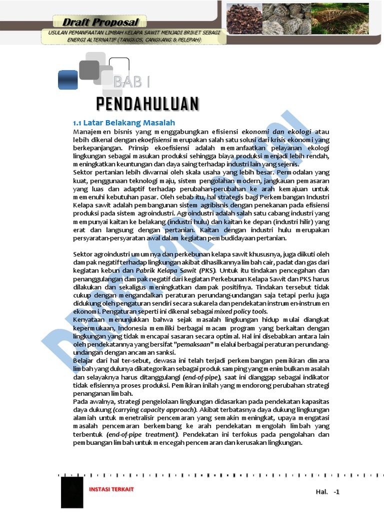 01. Draft Proposal Kerangka Pemanfaatan Limbah Kelapa Sawit Menjadi Briket Sebagi Energi Alternatif
