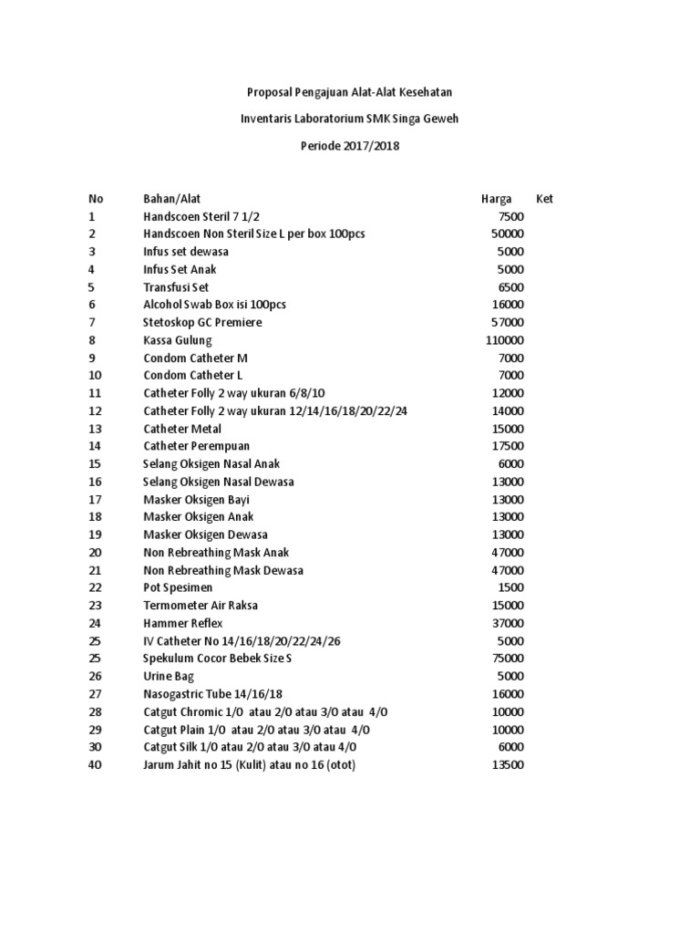 Contoh Proposal Pengadaan Barang Alat Kesehatan - Berbagai Alat