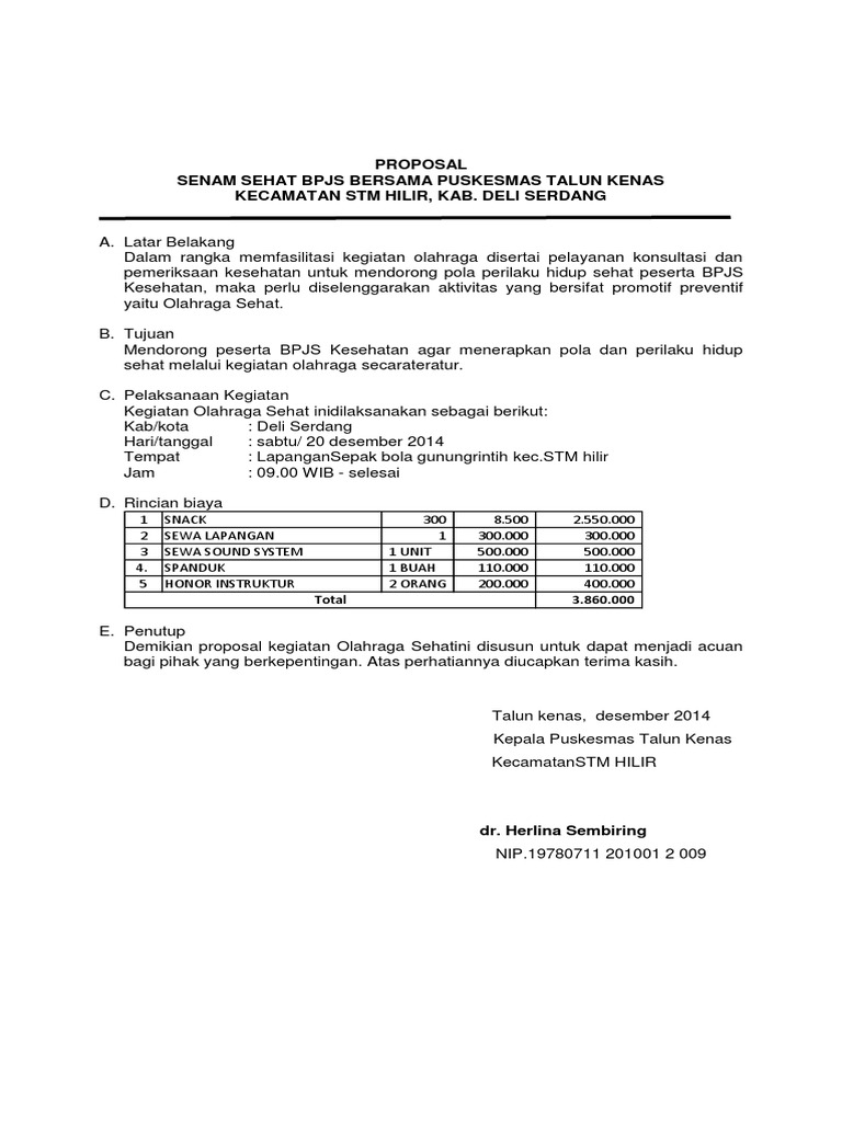 DOC) proposal KEGIATAN SENAM SEHAT | Rabiatul Adawiyya - Academia.edu