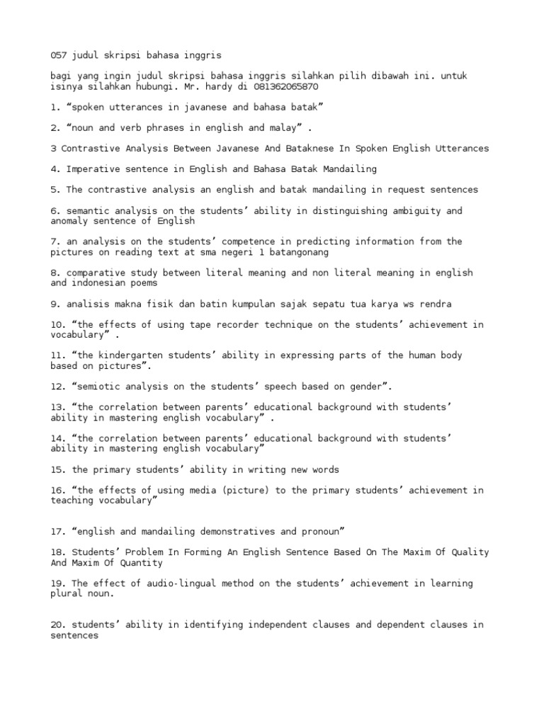 101 judul skripsi bahasa inggris | Indonesian Language | English Language