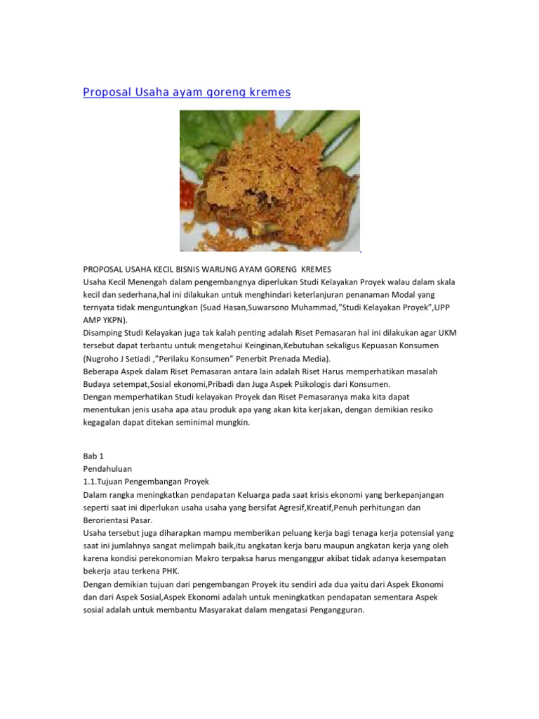 Contoh Proposal Bisnis Restoran Ayam Goreng - [DOCX Document]