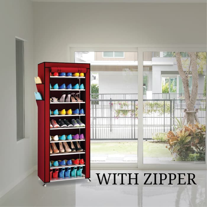 BAYAR DI TEMPAT - RAK SEPATU 10 SUSUN 9 SEKAT KAIN OXFORD / Lemari Sepatu Bongkar Pasang / Rak Sepatu Portable Resleting / Rak Serbaguna /Rak Baju Cover motif | Lazada Indonesia