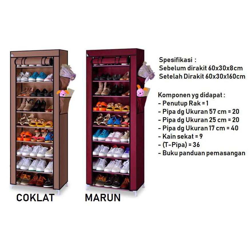 COD Bayar Di Tempat rak sepatu kain 10 susun ( 9 rangka ) tipe 1099 - coffee Lemari Sepatu | Shopee Indonesia