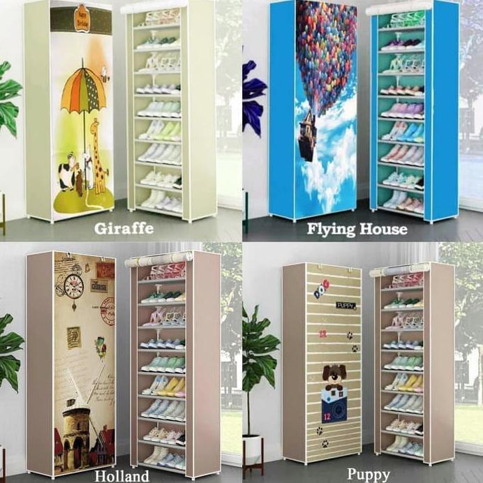 Rak sepatu portable karakter / lemari sepatu kain 10 susun 9 rangka | Shopee Indonesia