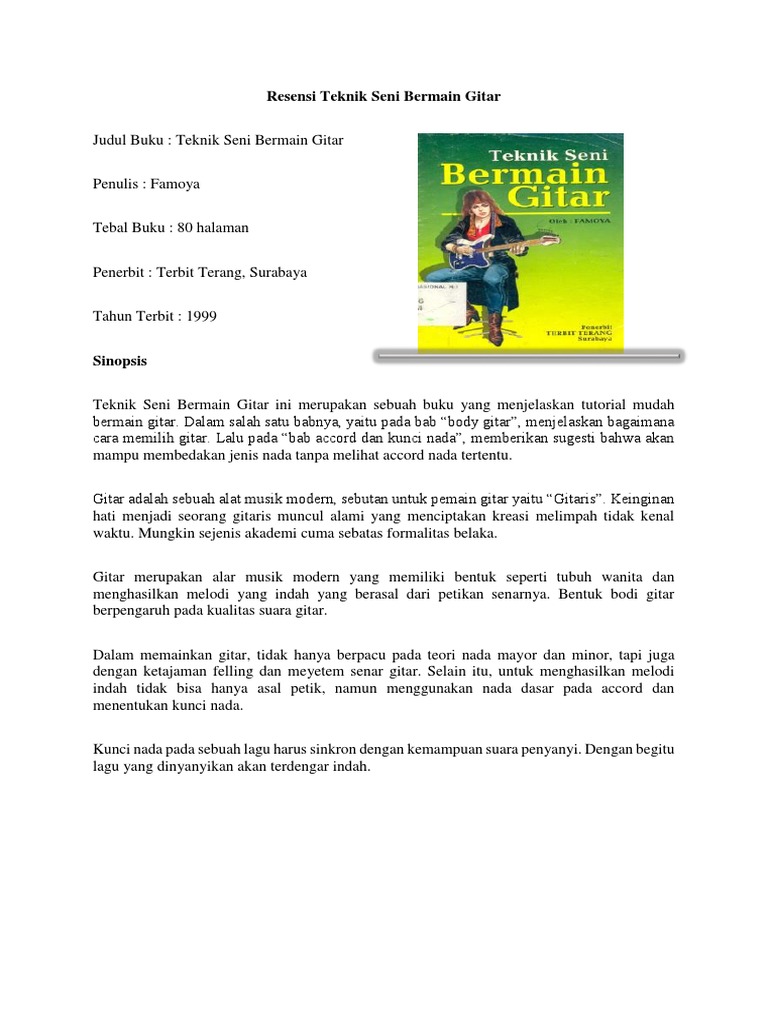 Berikut ini adalah beberapa.docx - Resensi buku 1 JUDUL BUKU Teknik Seni Bermain Gitar PENGARANG Famoya PENERBIT Terbit Terang Surabaya TAHUN TERBIT | Course Hero