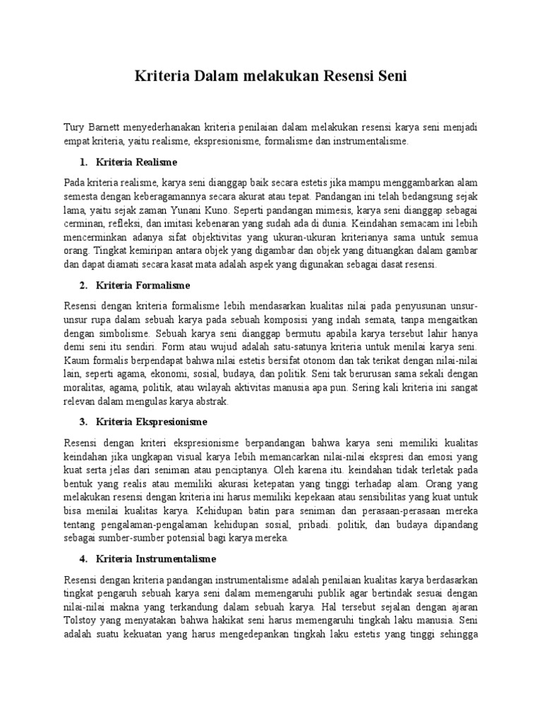 jelaskan kriteria kriteria dalam melakukan resensi seni - Brainly.co.id