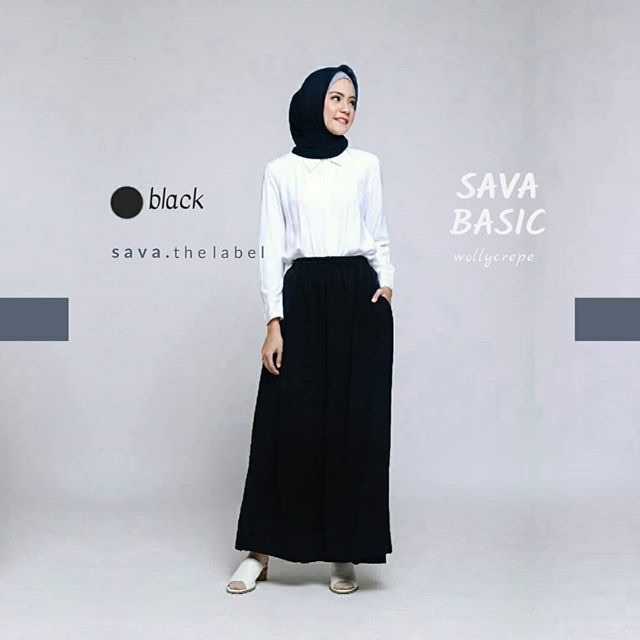 Promo Rok Panjang SAVA BASIC crepe BLACK-kuliah kerja lebar payung …
