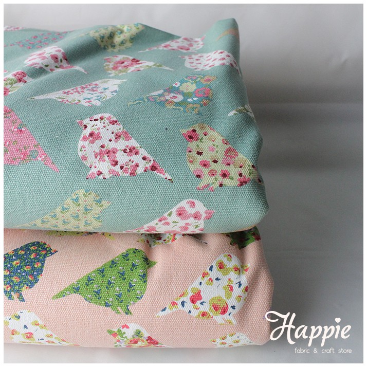 R4-023] Flowery Bird Fabric, kain katun linen, kain kerajinan …