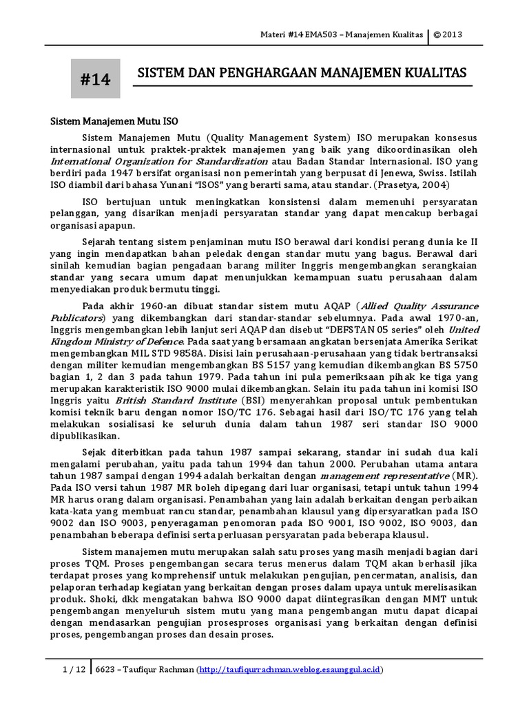 Sistem Dan Penghargaan Manajemen Kualitas