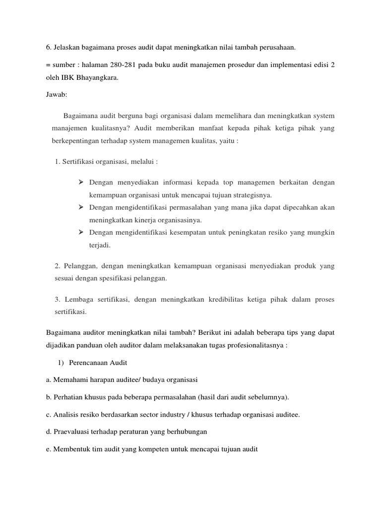 audit internal essay bab 7 - Bab 7 Audit Sistem Kepastian Kualitas Pertanyaan(Halaman 324 1 Apa yang dimaksud dengan audit sistem kepastian kualitas 2 | Course Hero