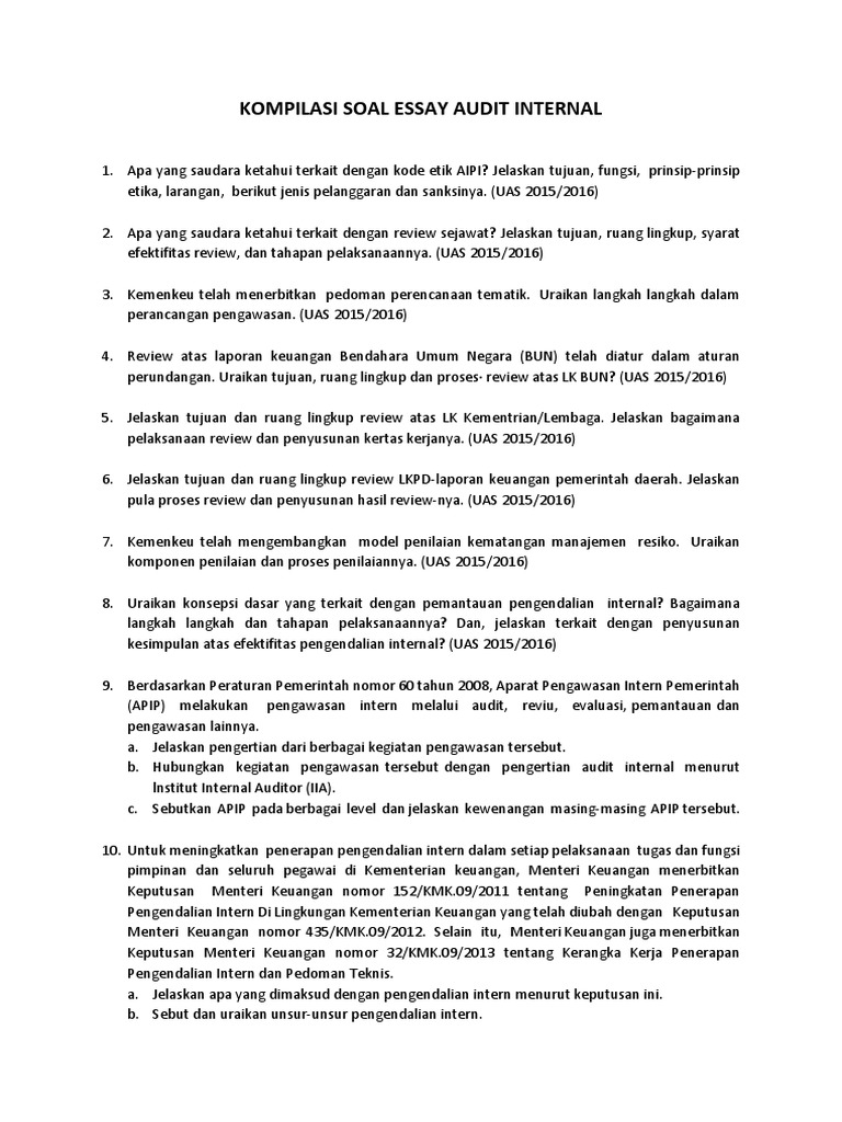 Kompilasi Soal Essay Audit Internal