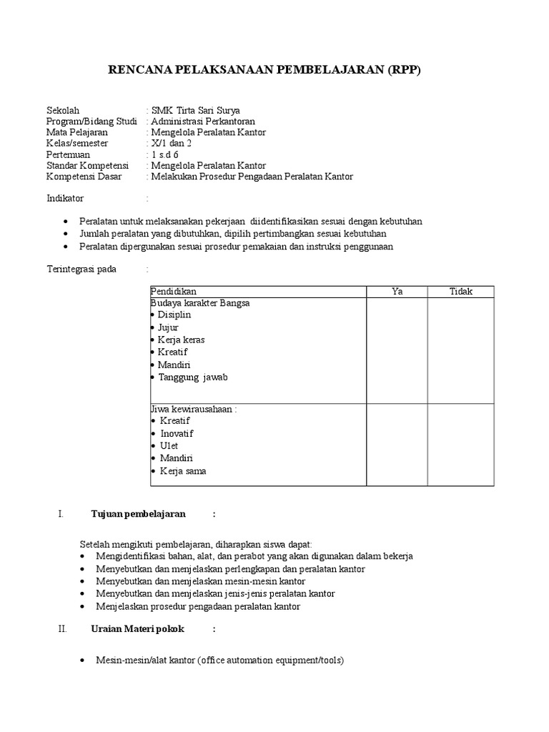 Rpp Mengelola Peralatan Kantor