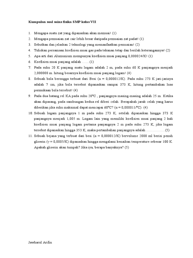 Kumpulan soal-soal suhu, pemuaian dan kalor UN IPA SMP Kelas 9 Nurul …