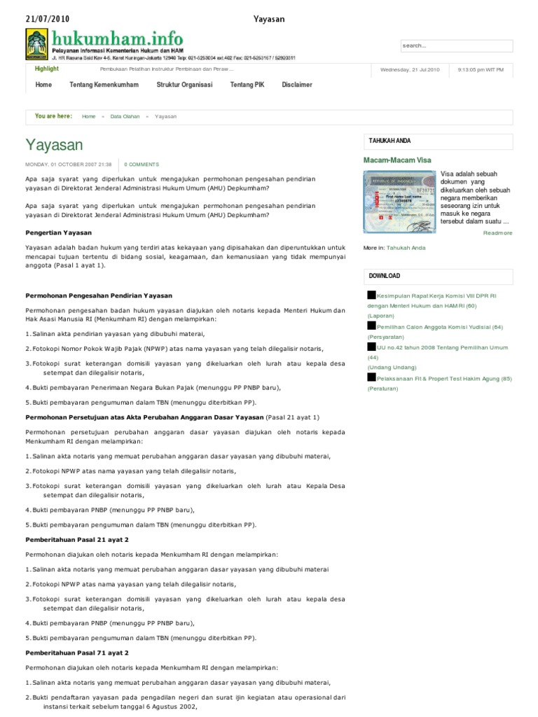 PDF) KEDUDUKAN YAYASAN YANG BELUM DISESUAIKAN DENGAN UNDANG-UNDANG …