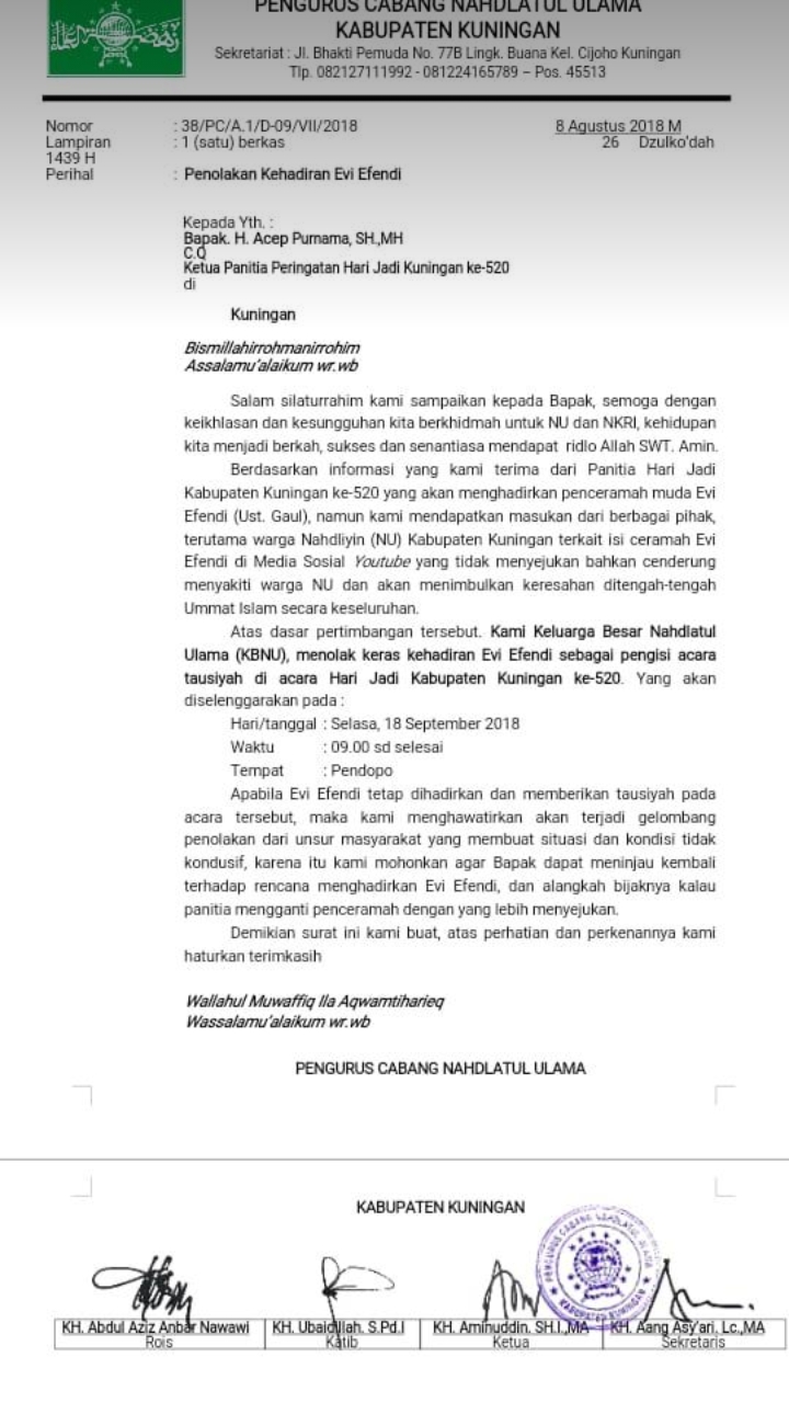 AKAN ISI CERAMAH DI KUNINGAN, NU TOLAK KEHADIRAN USTADZ EVIE …