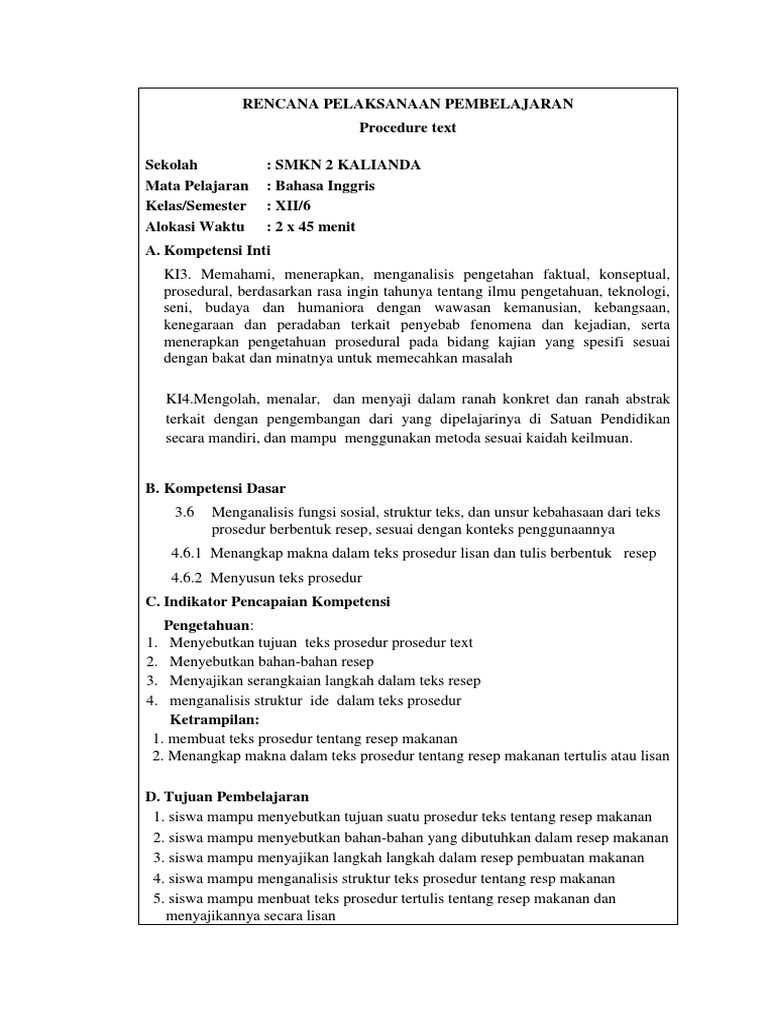 Rpp Procedure Text Kurikulum 2013 - Guru Ilmu Sosial