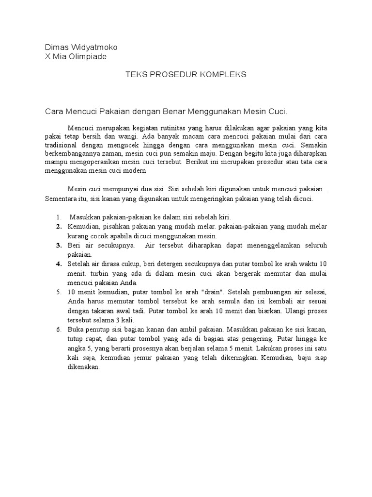Contoh Procedure Text Paling Lengkap Tentang Mesin Cuci