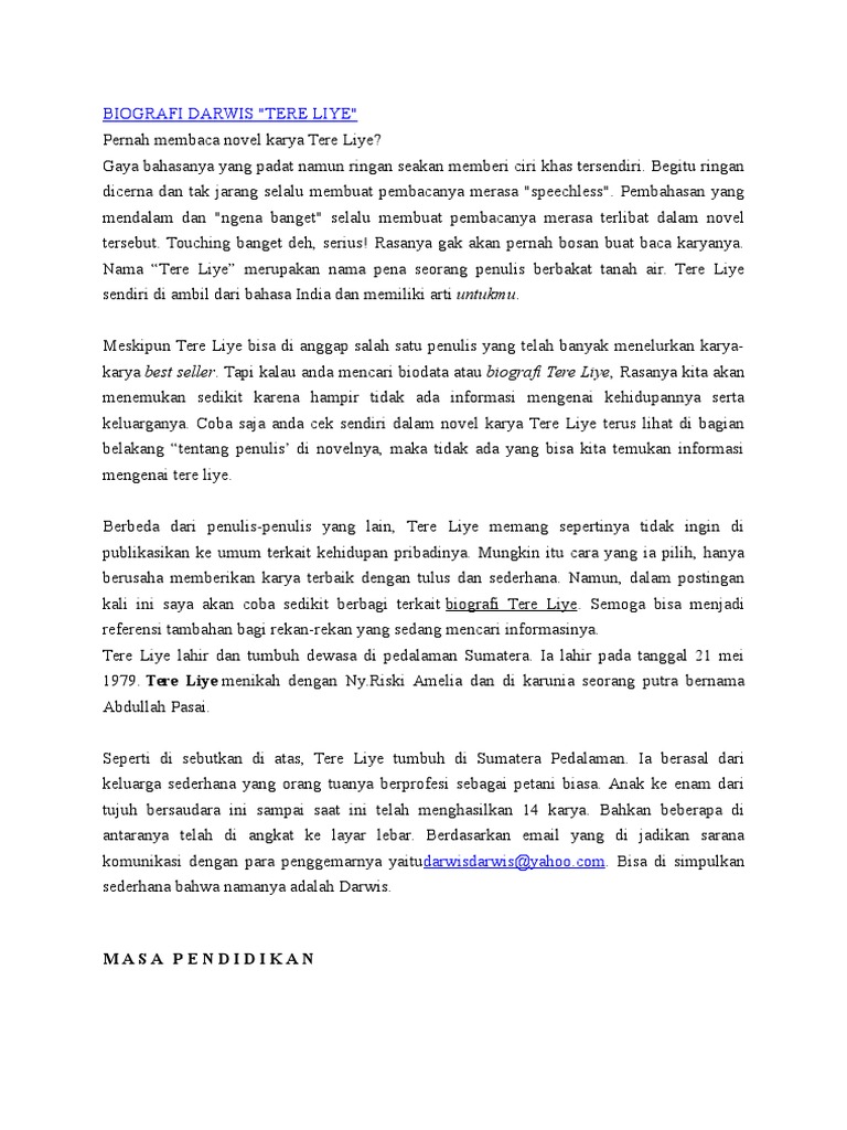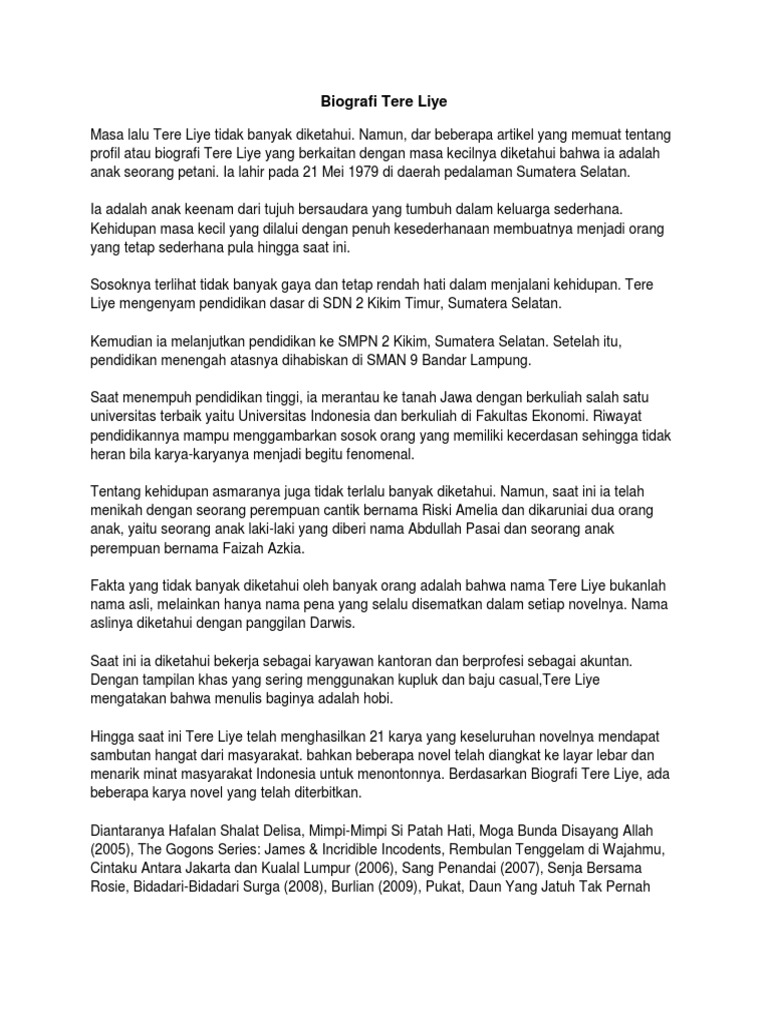 DOC) Biografi Tere Liye | Gufron Fachri Pratista Yogamahi - Academia.edu