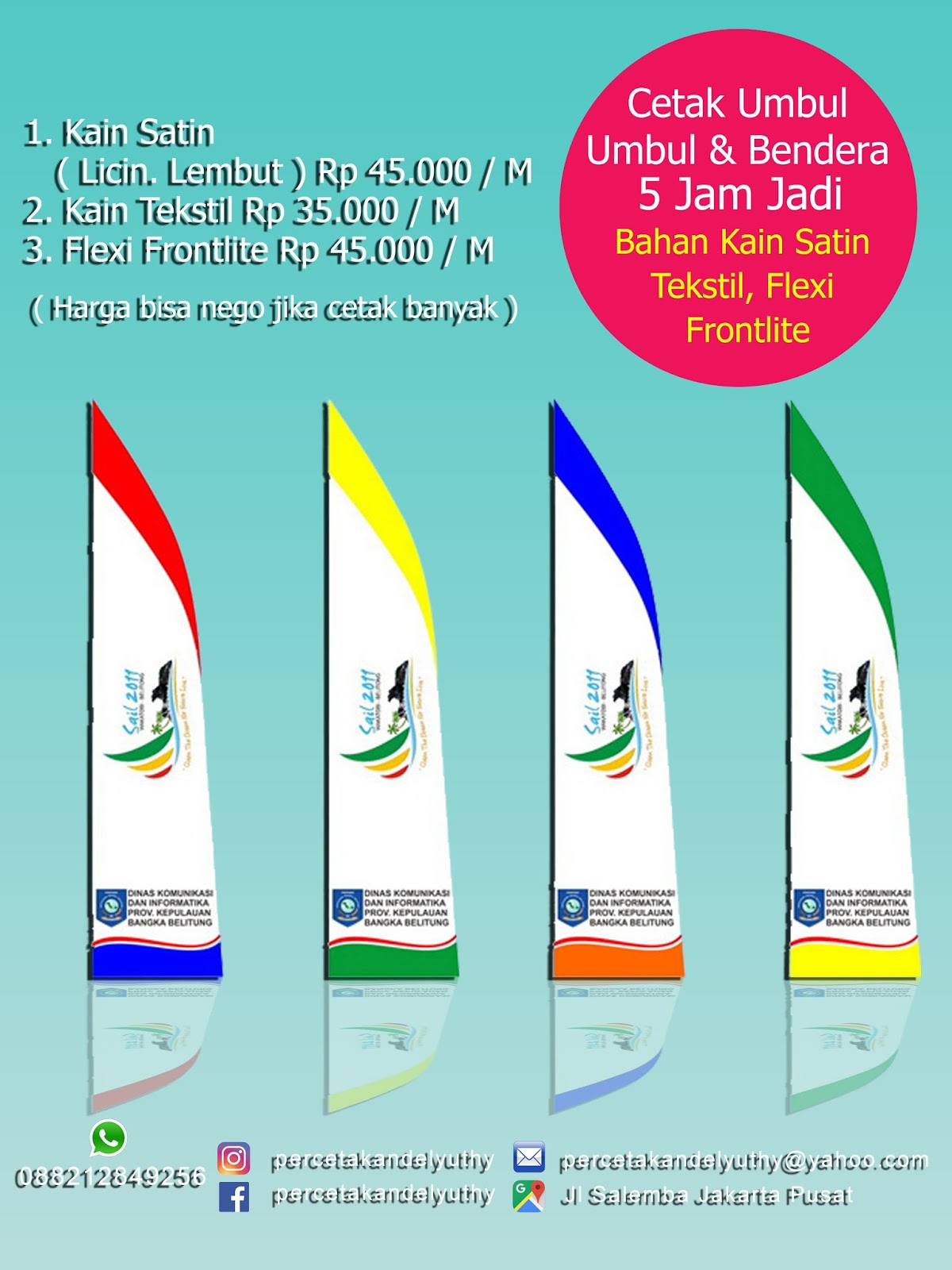 Selamat Datang di Percetakan Delyuthy I 087881909483 Wa I E-mail percetakandelyuthy@yahoo.com | : Cetak Umbul Umbul Murah Jakarta Rp 35.000 / M 5 Jam Jadi