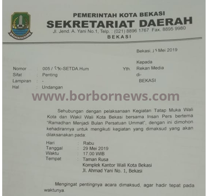 Undangan Tatap Muka Bersama Walikota Bekasi dan Wakil Walikota Kepada Awak Media - Borbor News