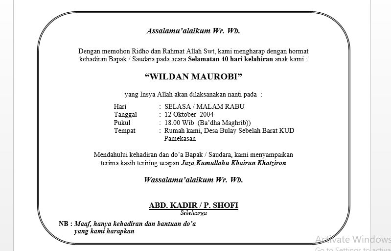 Contoh Surat Undangan Aqiqah Tasyakuran Kelahiran Bayi | Belajar Office