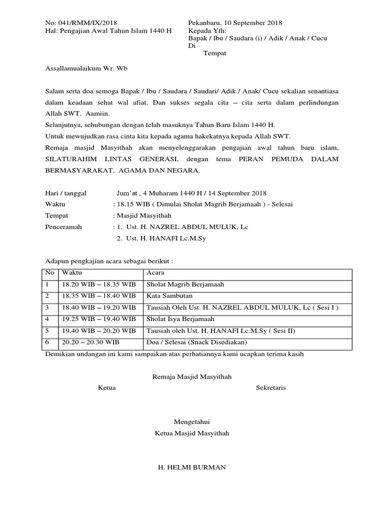 DOC) Contoh surat undangan DKM Masjid | Tirta Handyan - Academia.edu