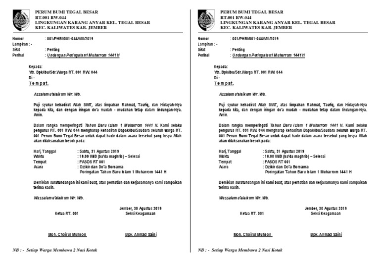 Contoh Surat Undangan Peringatan Tahun Baru Islam - Kumpulan Surat Penting