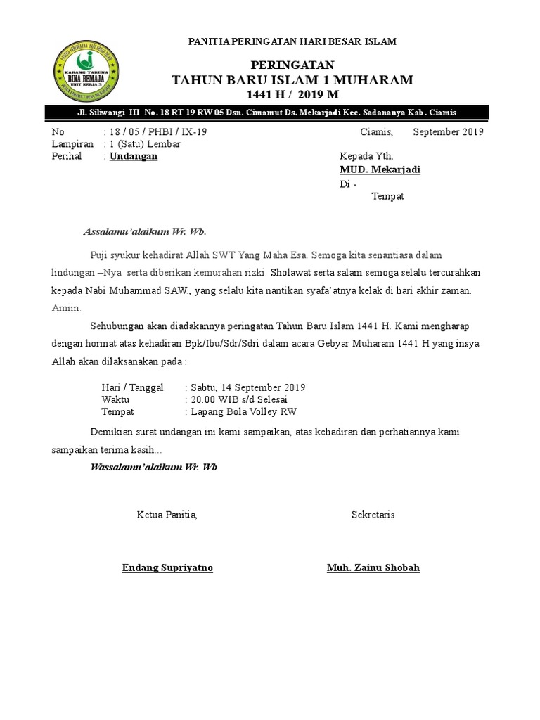 Surat Undangan Pembentukan Panitia Peringatan Tahun Baru Islam 1441 H Lengkap - SERBANDESO Blog