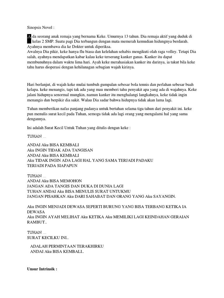 Sinopsis Unsur Intrinsik Dan Ekstrinsik Novel Surat Kecil Untuk Tuhan - Berbagai Unsur