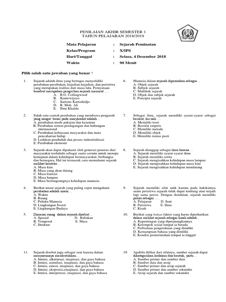 Soal Sejarah Peminatan x Ips 2019