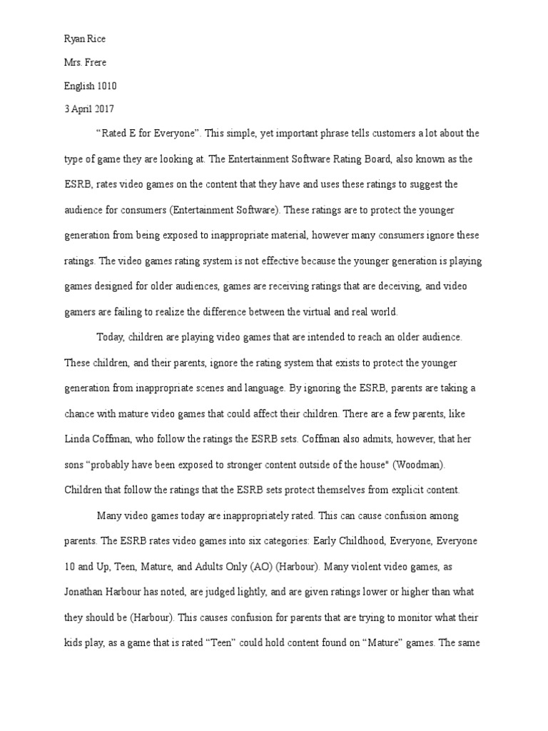 DOC) Persuasive Essay on Video Games | Sabire Akay - Academia.edu
